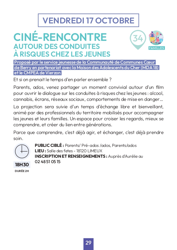 Proposé par le service jeunesse de la Communauté de Communes Coeur de Berry en partenariat avec la Maison des Adolescents du Cher (MDA 18) et le CMPEA de Vierzon