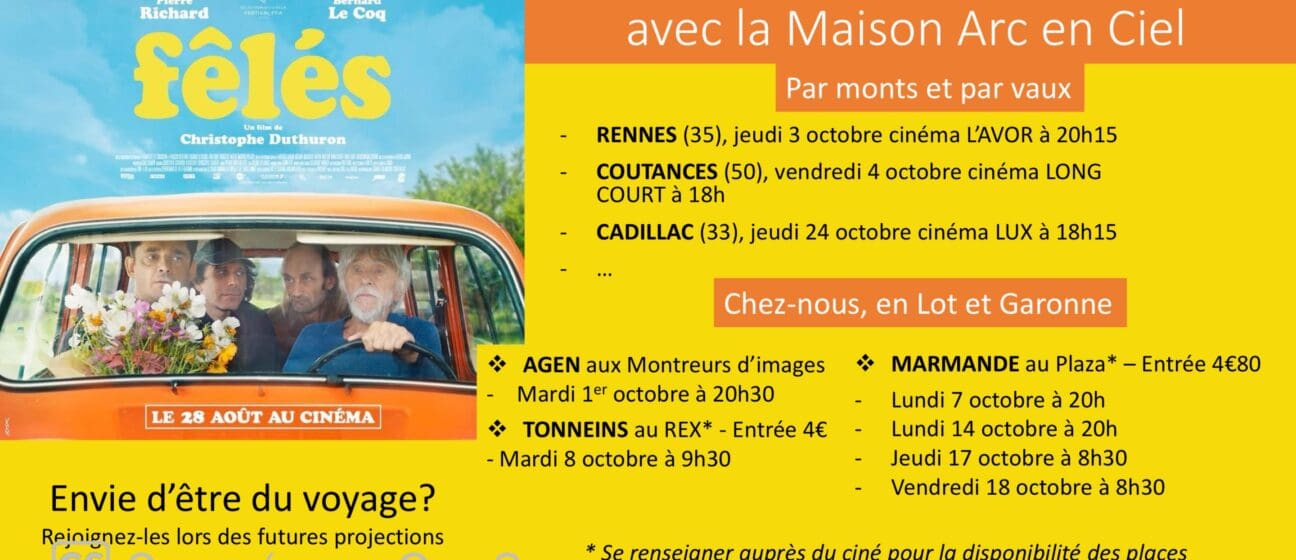 Diffusion du film « Feles » en présence des adhérents/acteurs du GEM Arc en Ciel de Marmande dans diverses du Lot et Garonne, Gironde mais aussi Rennes et Coutances.