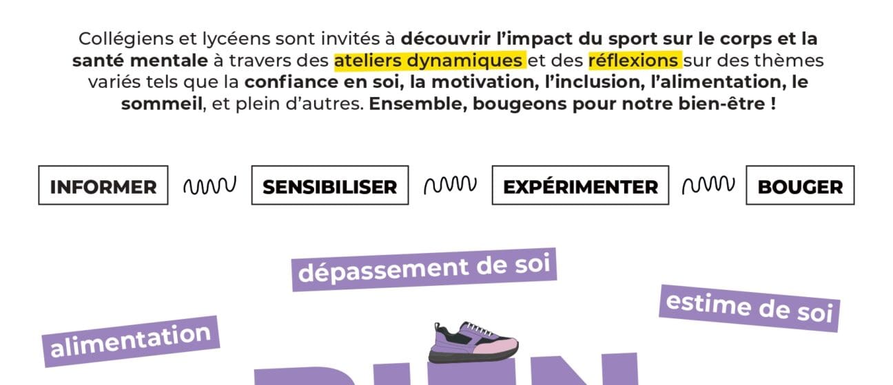 Pendant ces deux journées, les élèves auront l’opportunité de rencontrer des professionnels de la santé et du sport à travers des stands d’information, des ateliers ludiques et interactifs, des quiz, et des débats. Ils pourront ainsi mieux comprendre l’impact positif du sport sur leur bien-être mental tout en découvrant les ressources locales disponibles pour les accompagner.