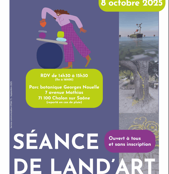 Le land’ art est utilisé comme médiation thérapeutique à l’EPSM 71 avec des objectifs globaux à personnaliser pour chaque patient (sortir hors les murs, destigmatiser, favoriser la créativité, l’imaginaire, l’expression, travailler la place dans le groupe, rencontrer et prendre en compte les autres, être attentif à son environnement, la nature, s’y adapter, travailler le lâcher prise, vivre l’instant présent, etc.). Le Land’ art est accessible à tous.