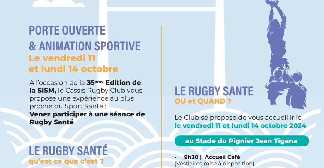 Le Cassis Rugby Club en partenariat avec La Maison de Santé du Bregadan à Cassis, vous propose de participer à une séance de Rugby Santé . Labellisé Club Pilote dans la catégorie Sport Santé par la FFR, le Cassis Rugby Club accueil depuis 3 ans différents publics afin de proposer des séances de Rugby sans contact et sans placage.